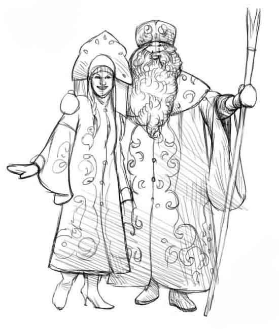 ![Поэтапное рисование Деда Мороза и Снегурочки]()