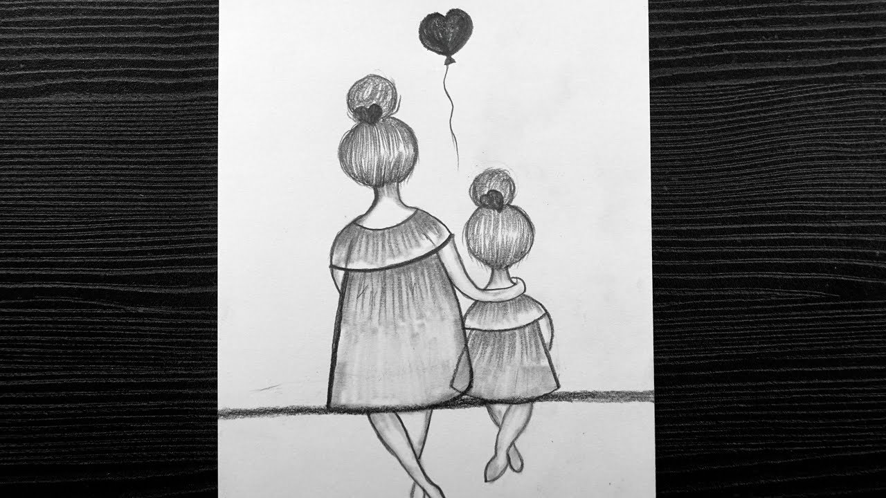 ![Мама и дочка рисунок карандашом]()