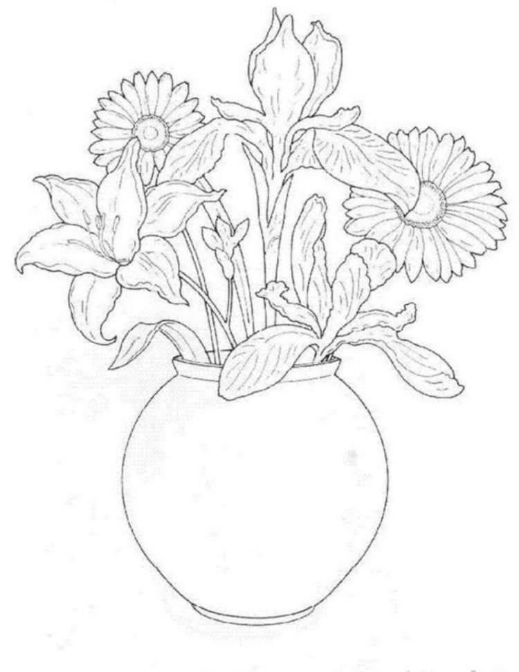Ваза с цветами для срисовки