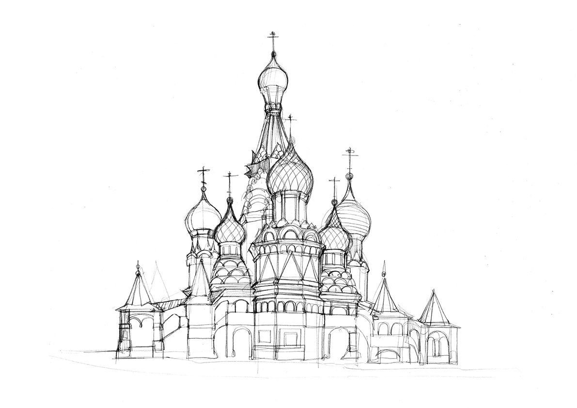 Нарисовать собор Василия Блаженного карандашом