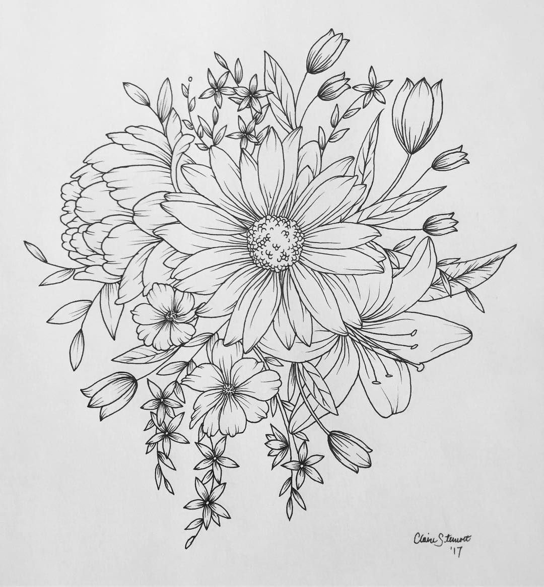 ![Букет цветов эскиз]()