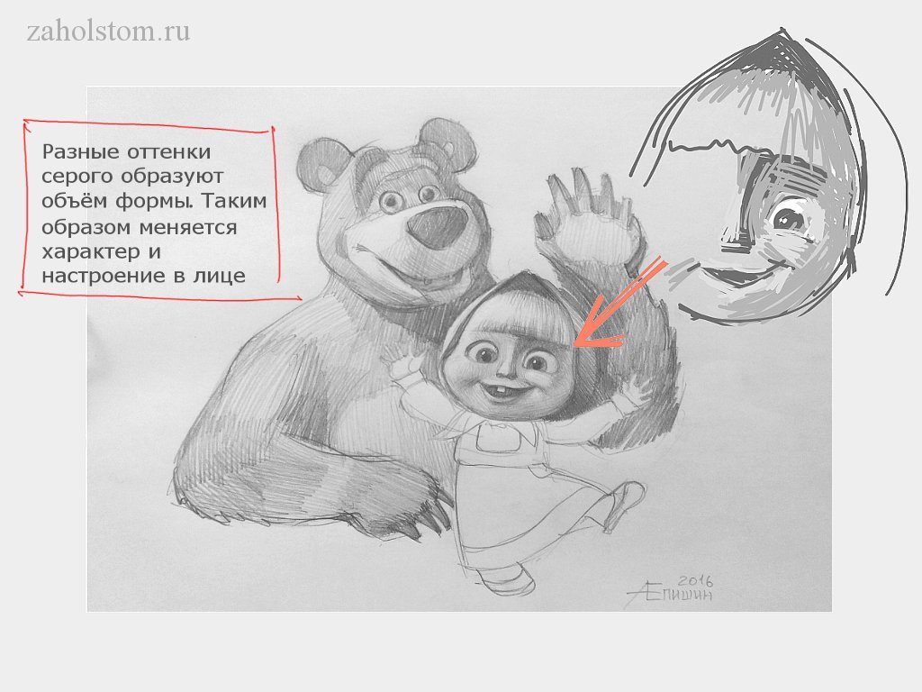 Рисовать Машу и медведь карандашом