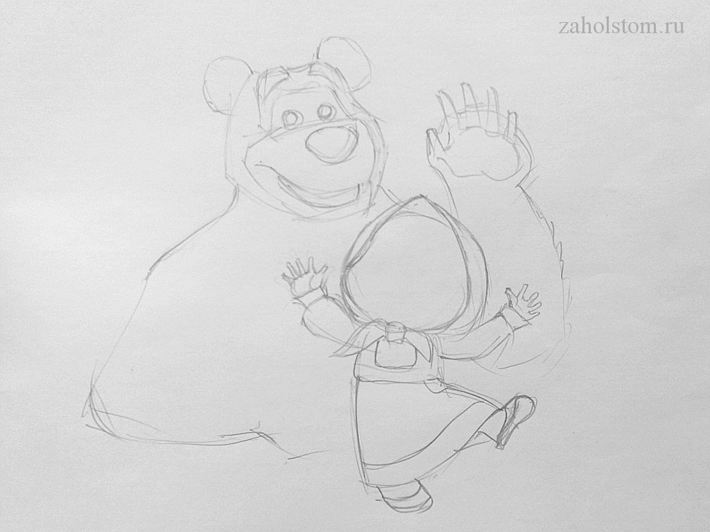 Нарисовать Машу и медведя карандашом