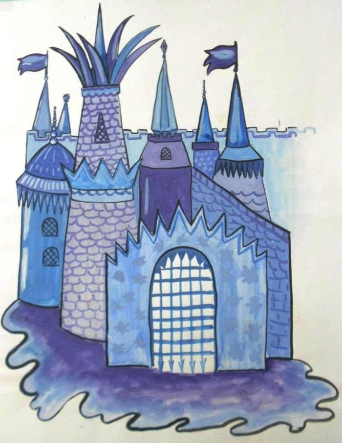 Дворец снежной королевы фломастерами