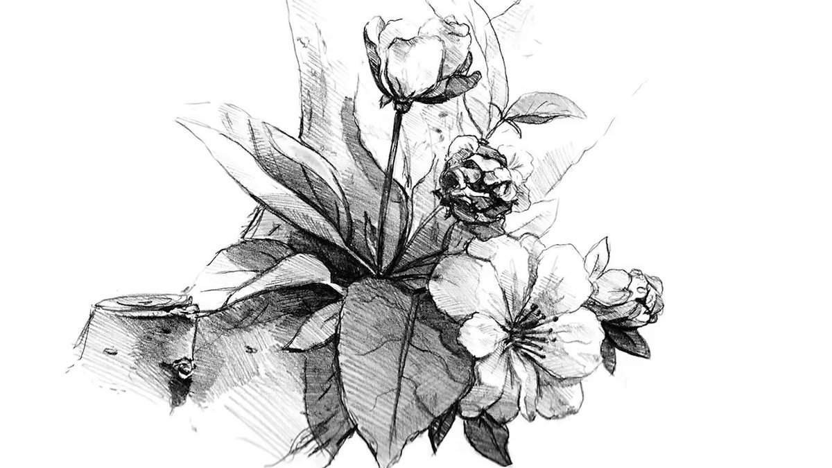 Цветы штриховка карандашом