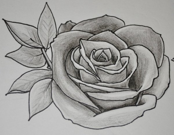 ![Эскиз розы карандашом]()