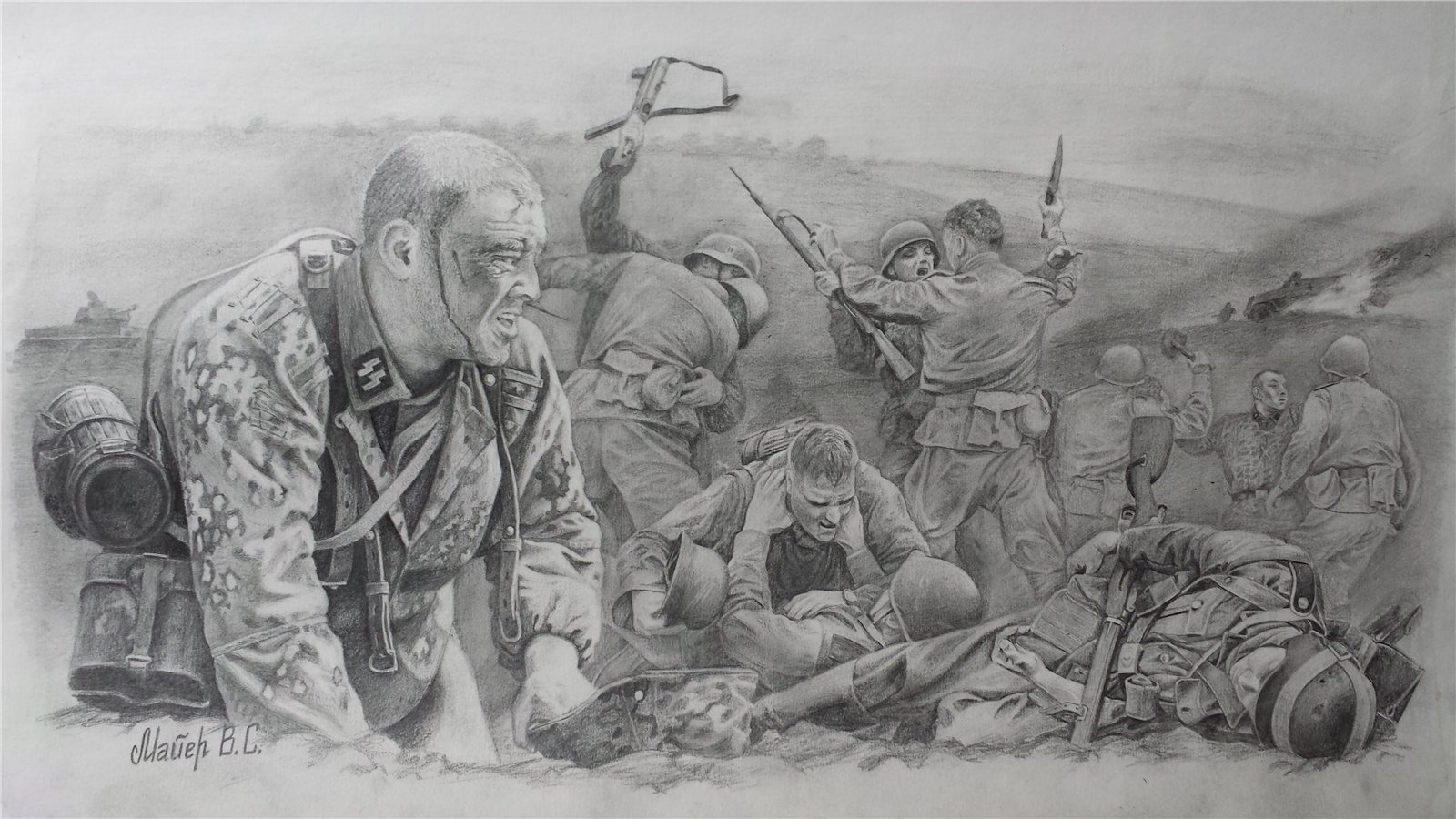 ![Рисунки на военную тематику карандашом]()