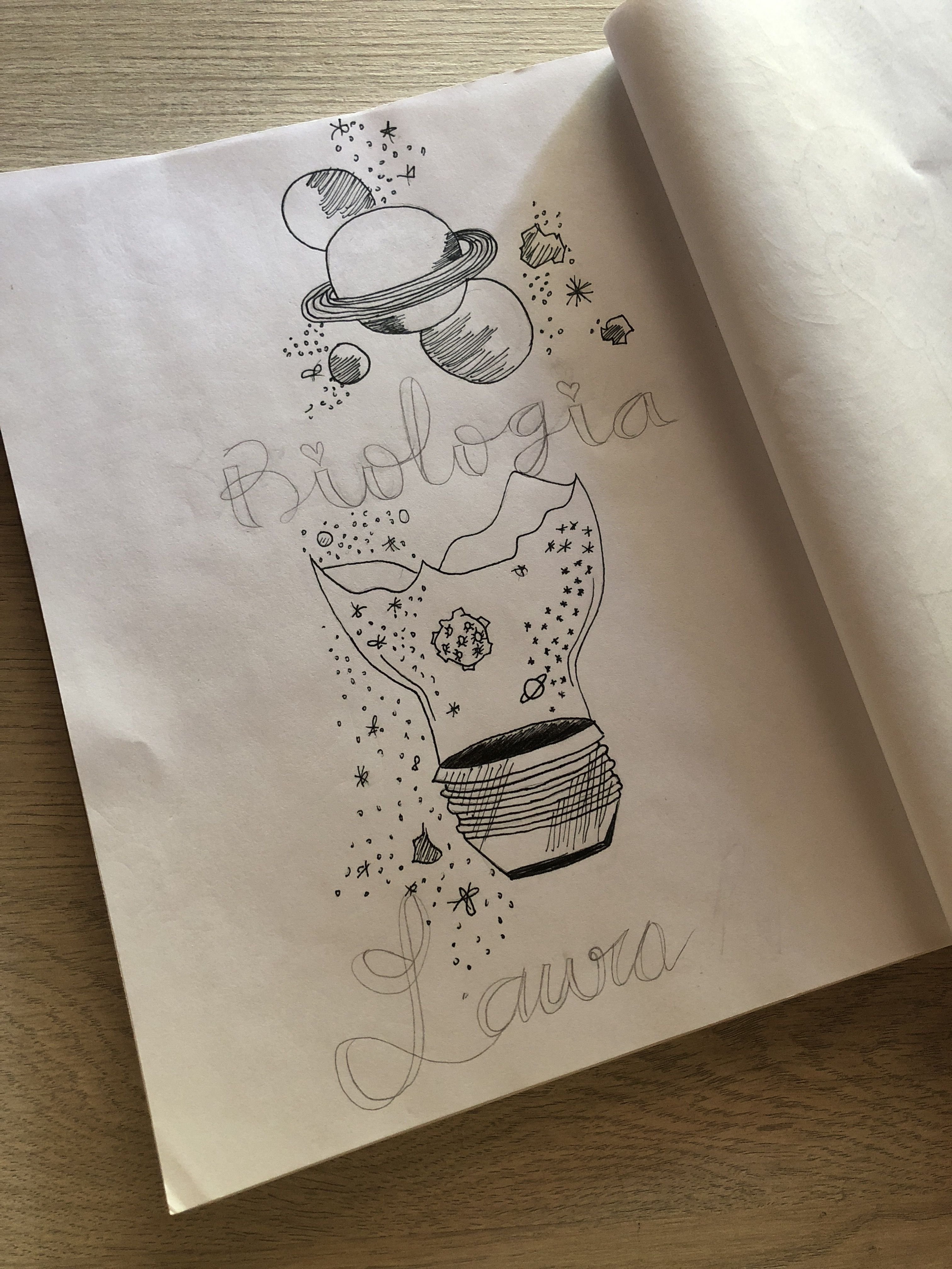 ![Наброски ручкой в тетради]()