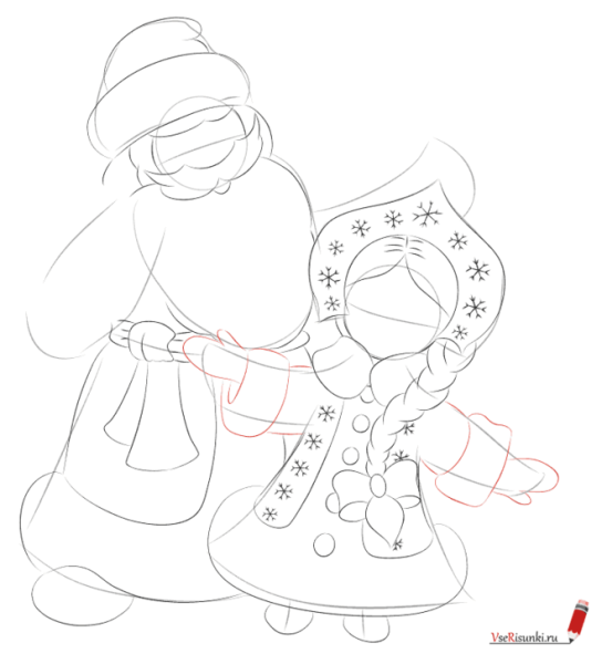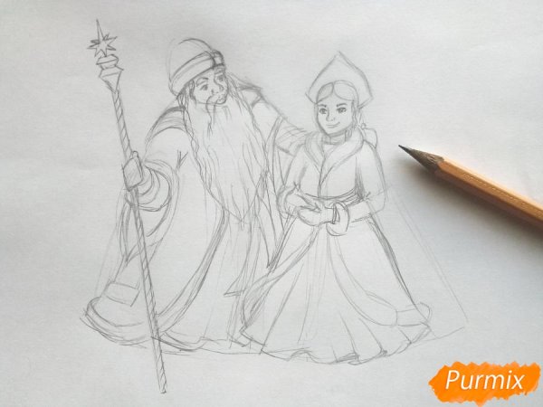 Дед Мороз и Снегурочка рисунок карандашом