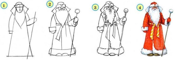 Пошаговое рисование Деда Мороза