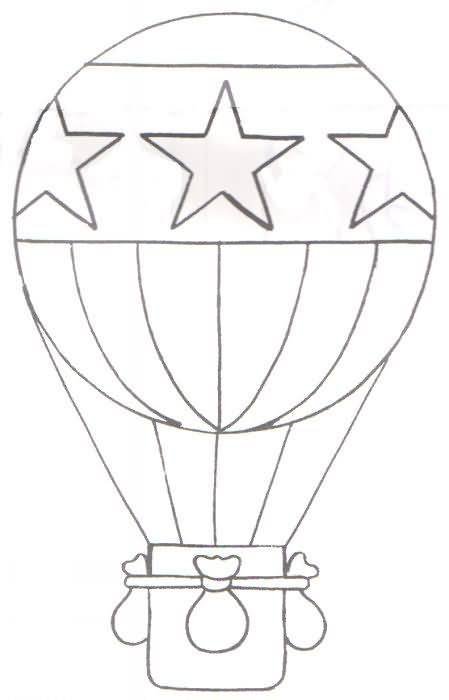 ![Воздушный шар с корзиной трафарет]()