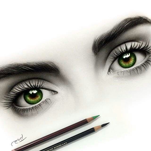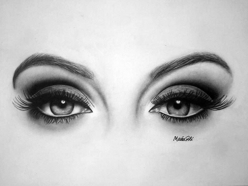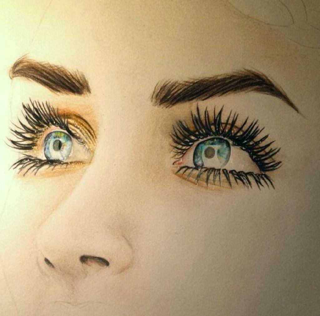 ![Нарисованные глаза карандашом девушек]()