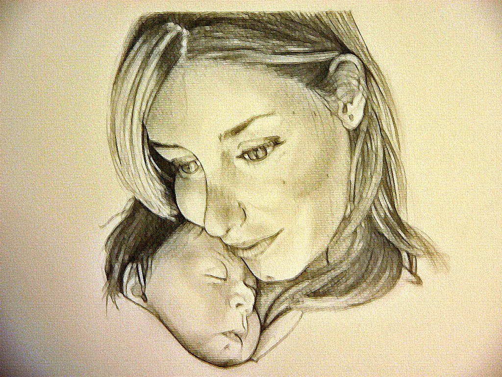 Мать и дитя карандашом