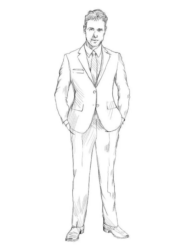 Рисунок человека в полный рост карандашом в одежде