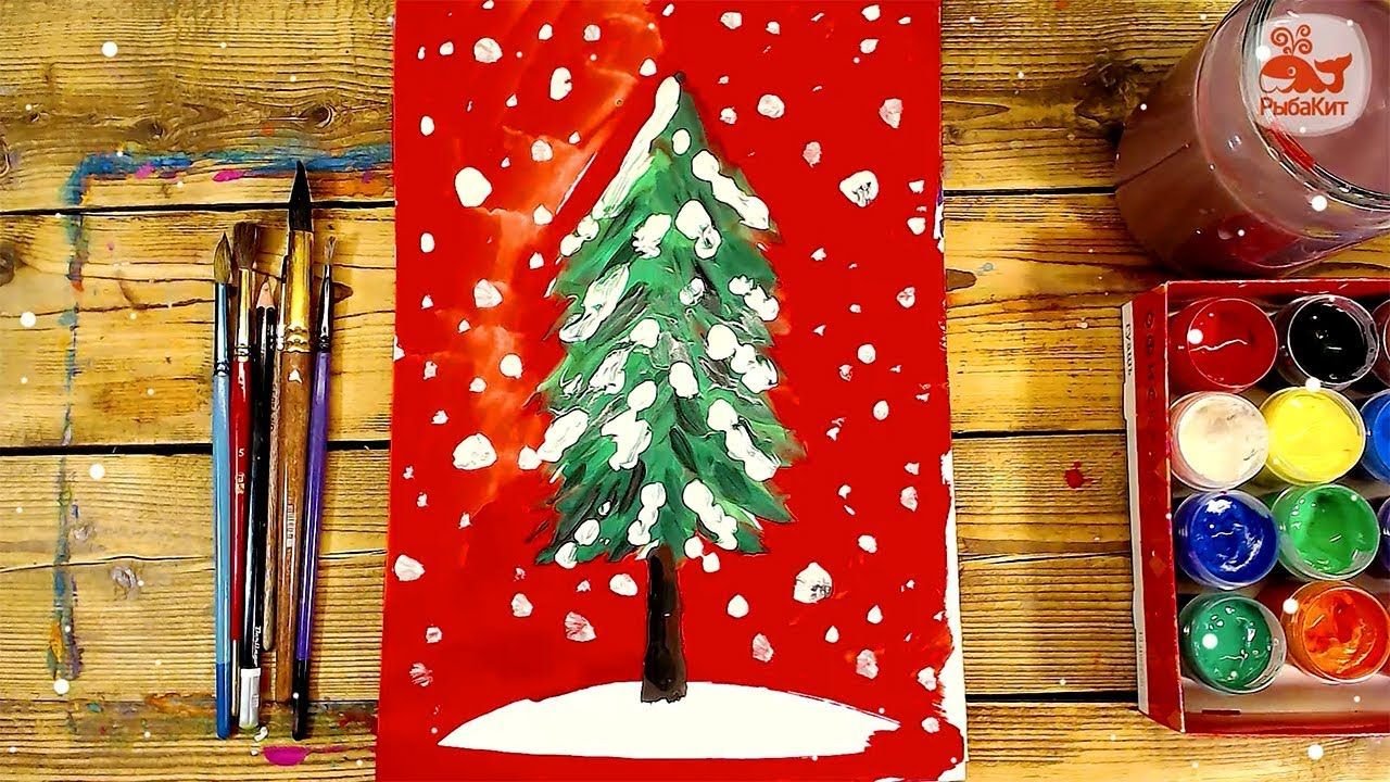 ![Рисуем новогоднюю елку акварельными красками с детьми]()