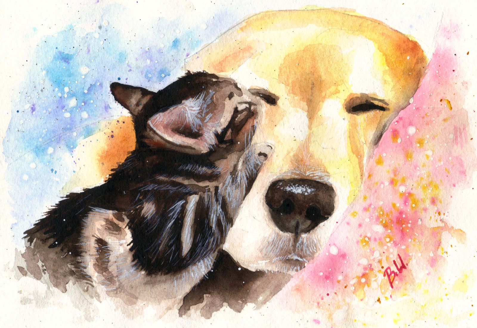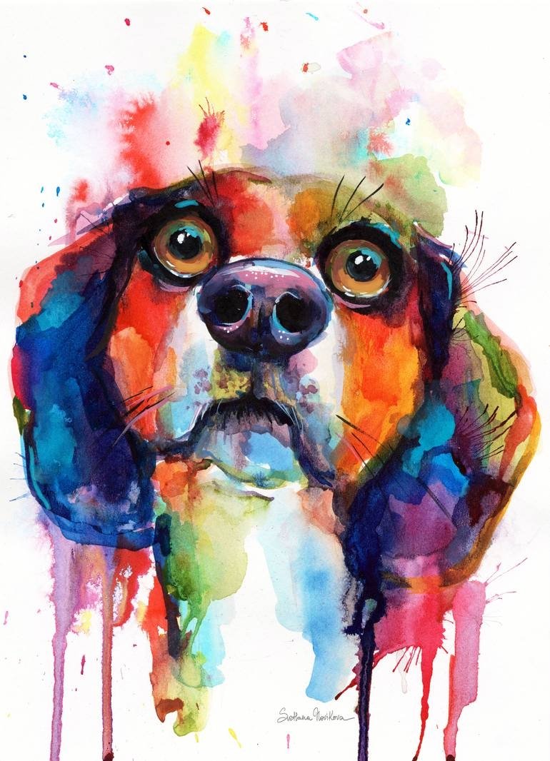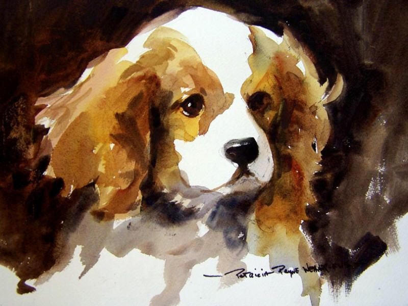 ![Кавалер Кинг Чарльз спаниель акварелью]()