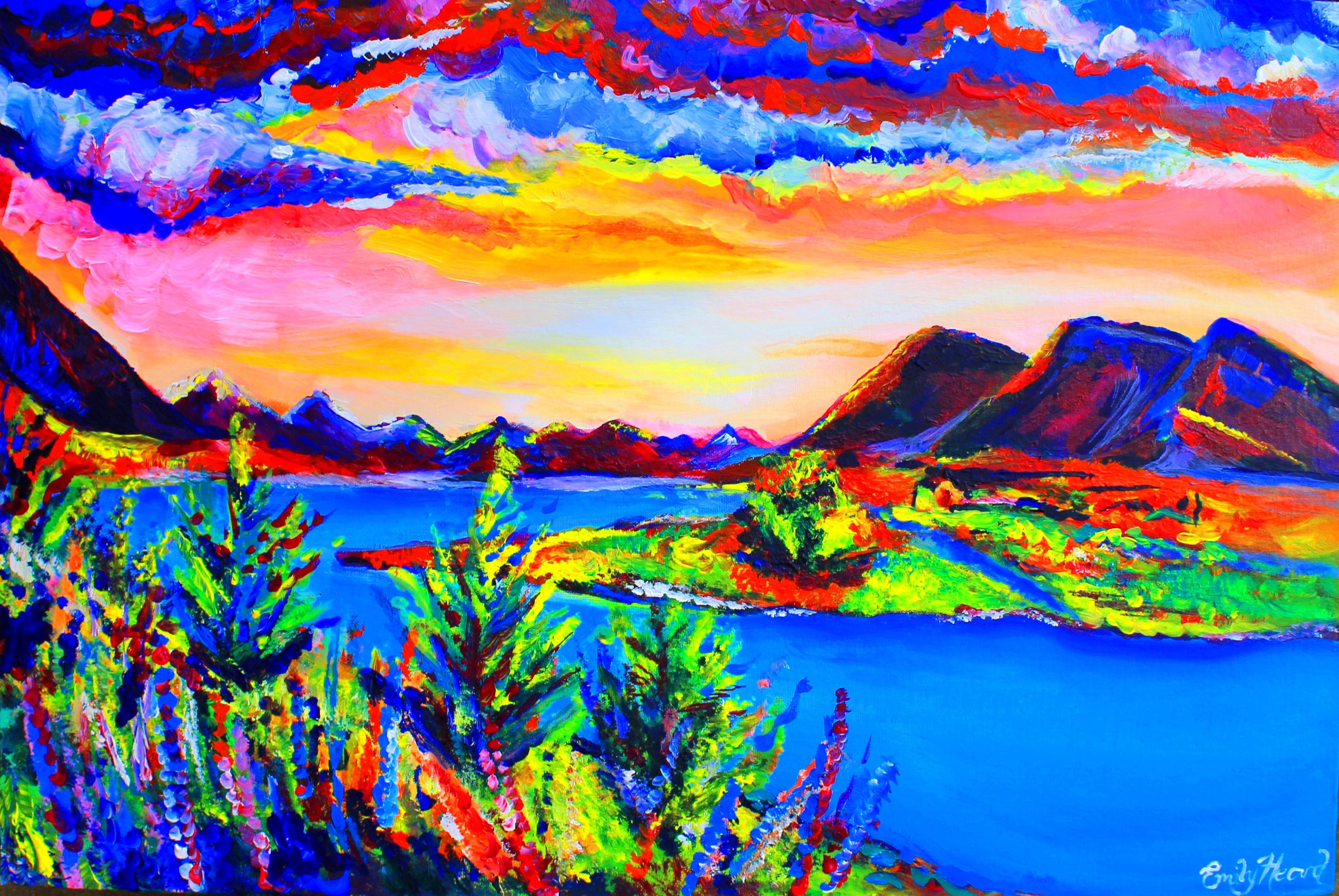 ![Пейзаж красками горы]()