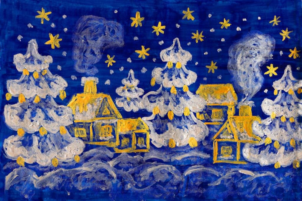 Зимние рисунки красками