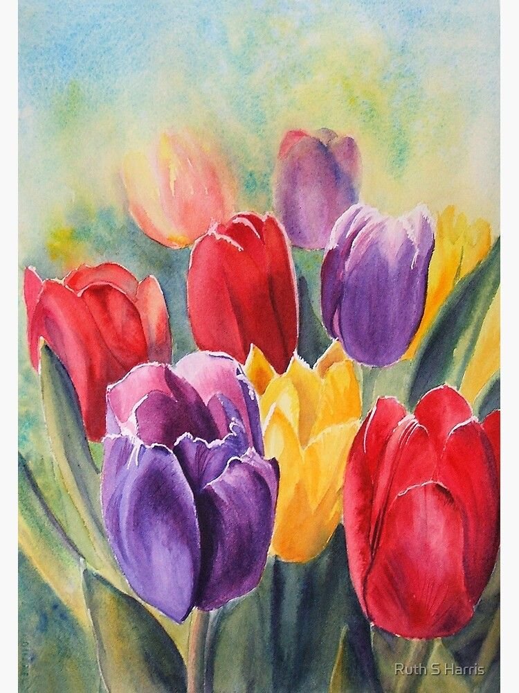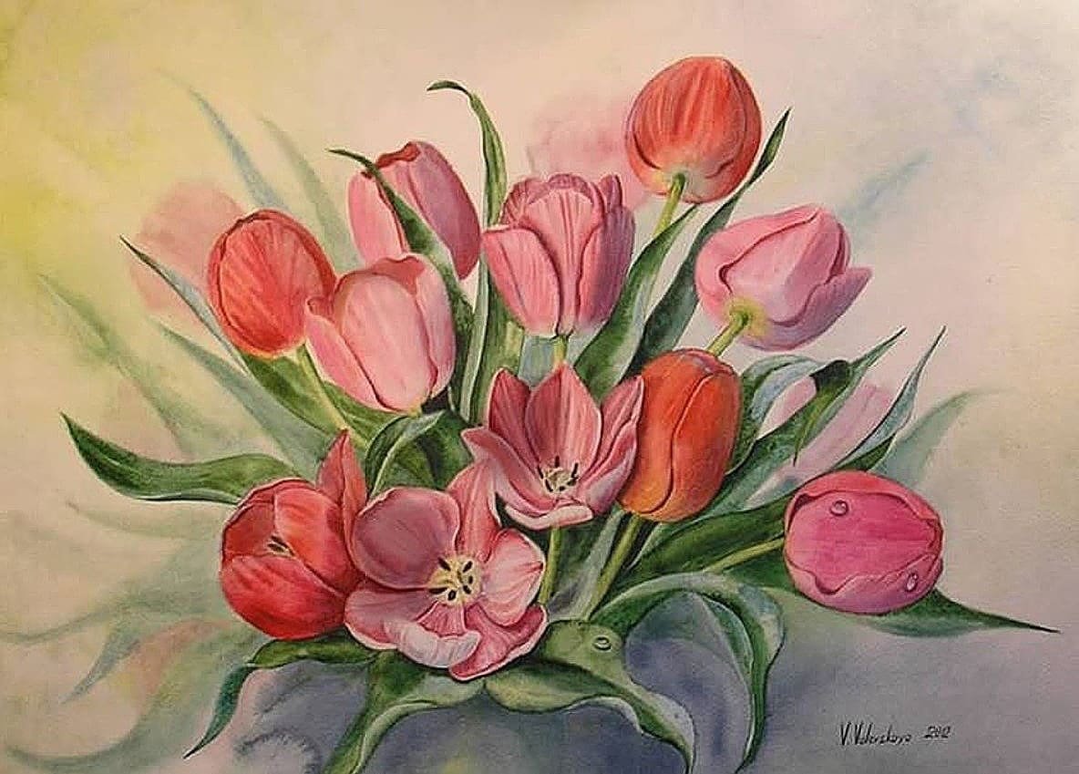 ![Тюльпаны акварель Диана Митчелл]()