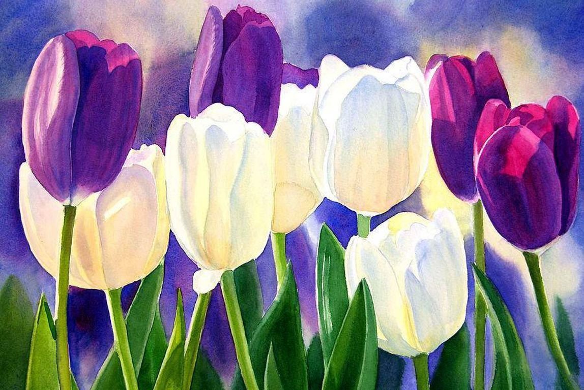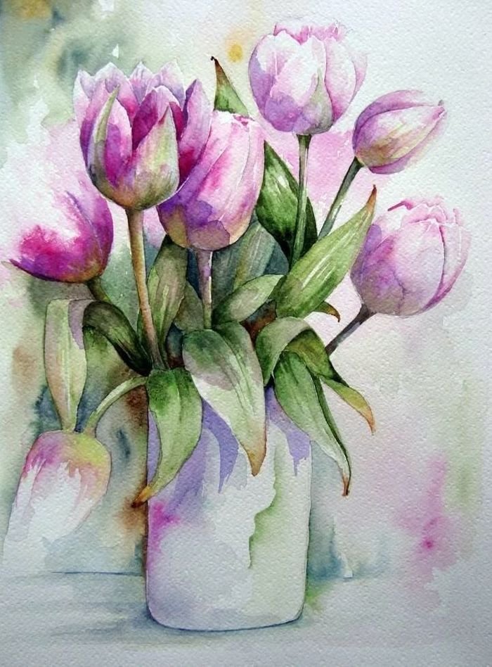 Тюльпаны акварелью