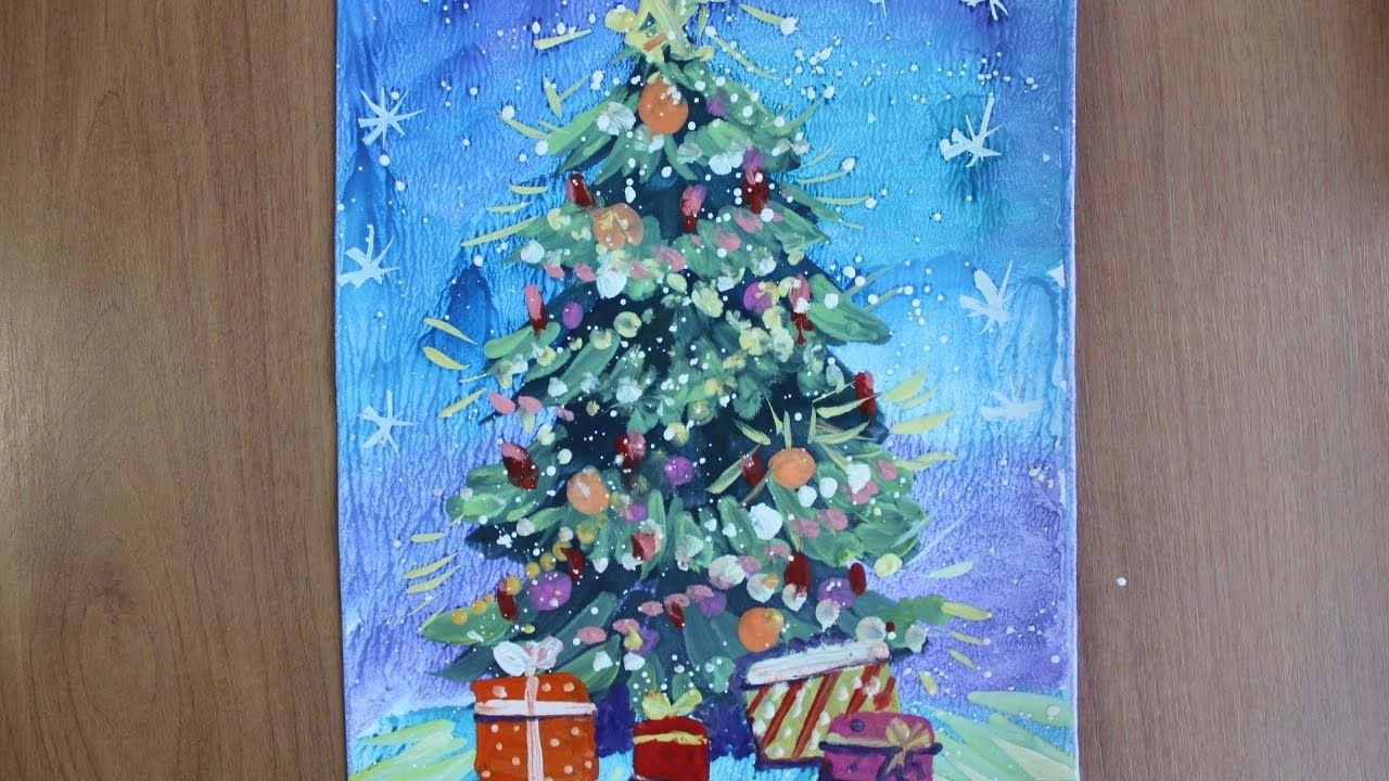 ![Новогодние рисунки красками]()