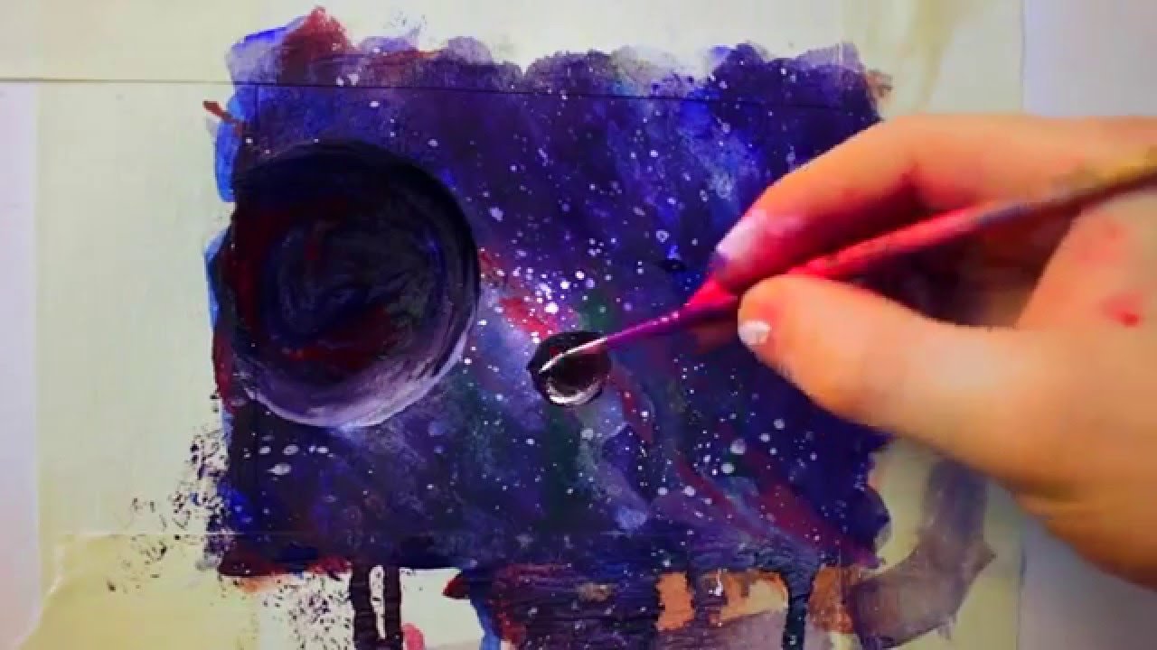![Красивые рисунки гуашью и губкой (46 фото)]()