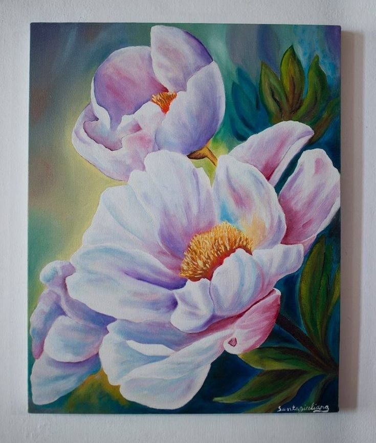 ![Цветы акрилом на холсте]()