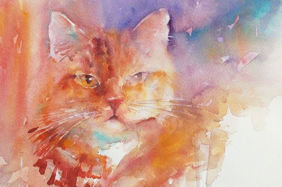 ![Кот акварелью]()