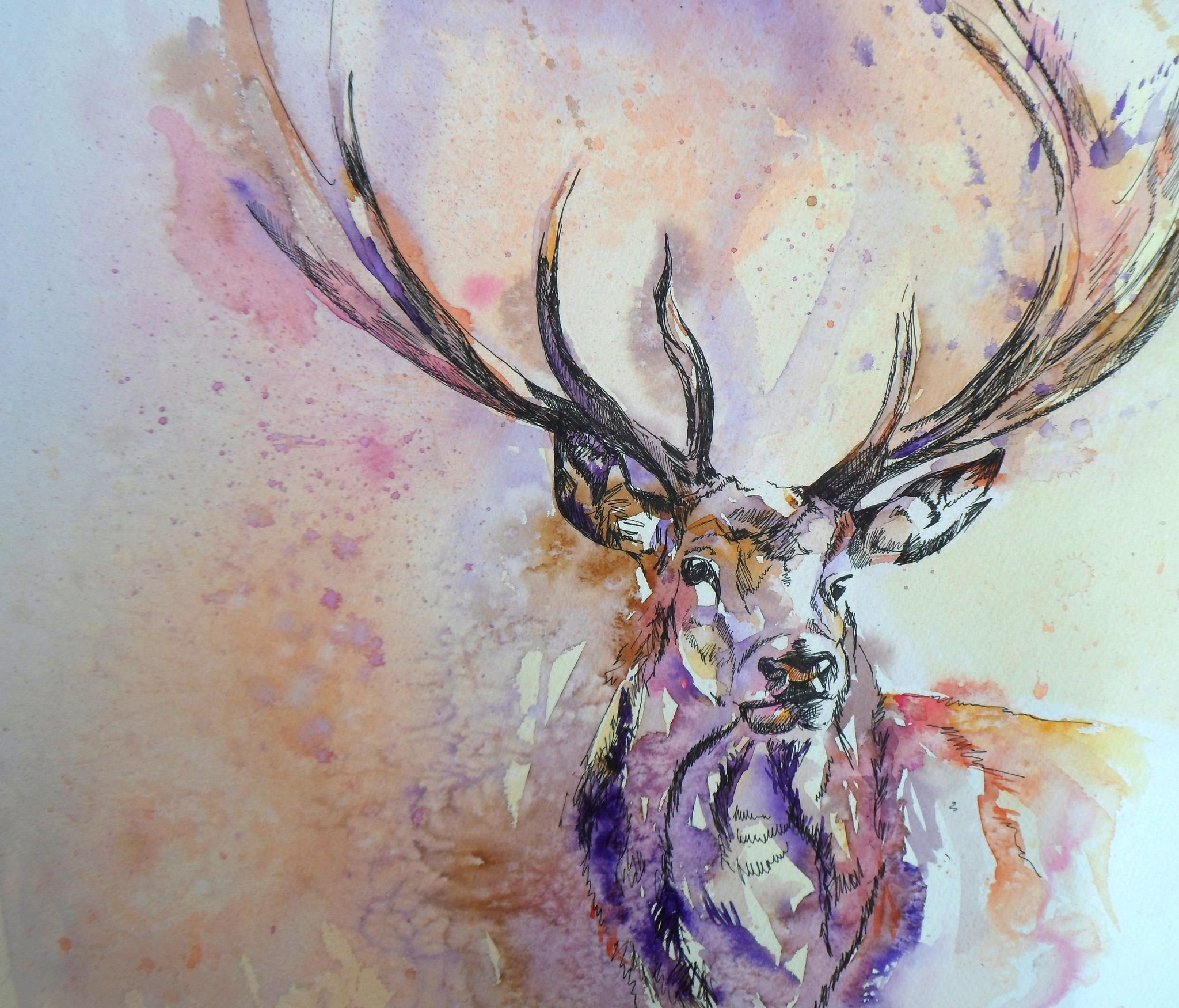 Олень акварелью