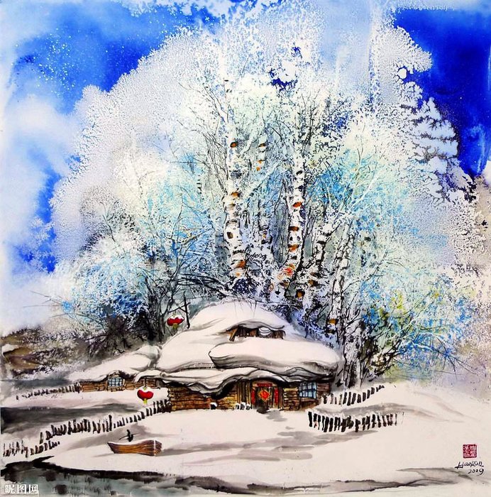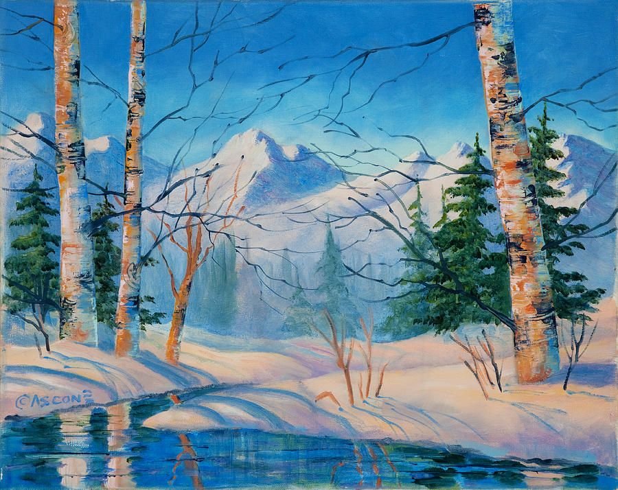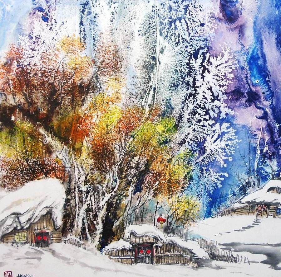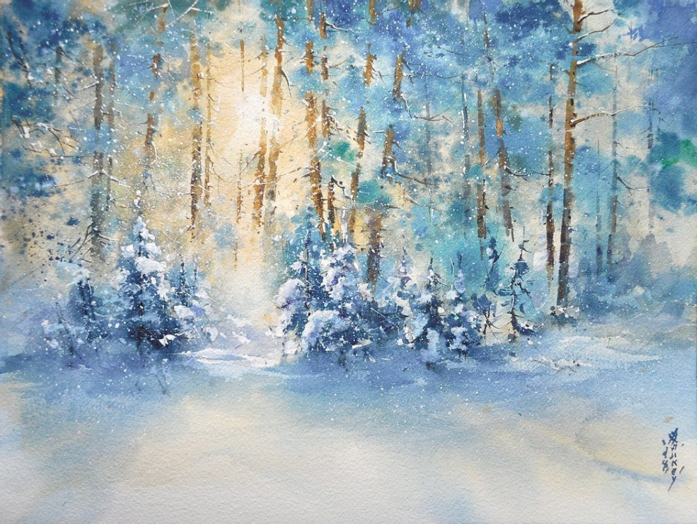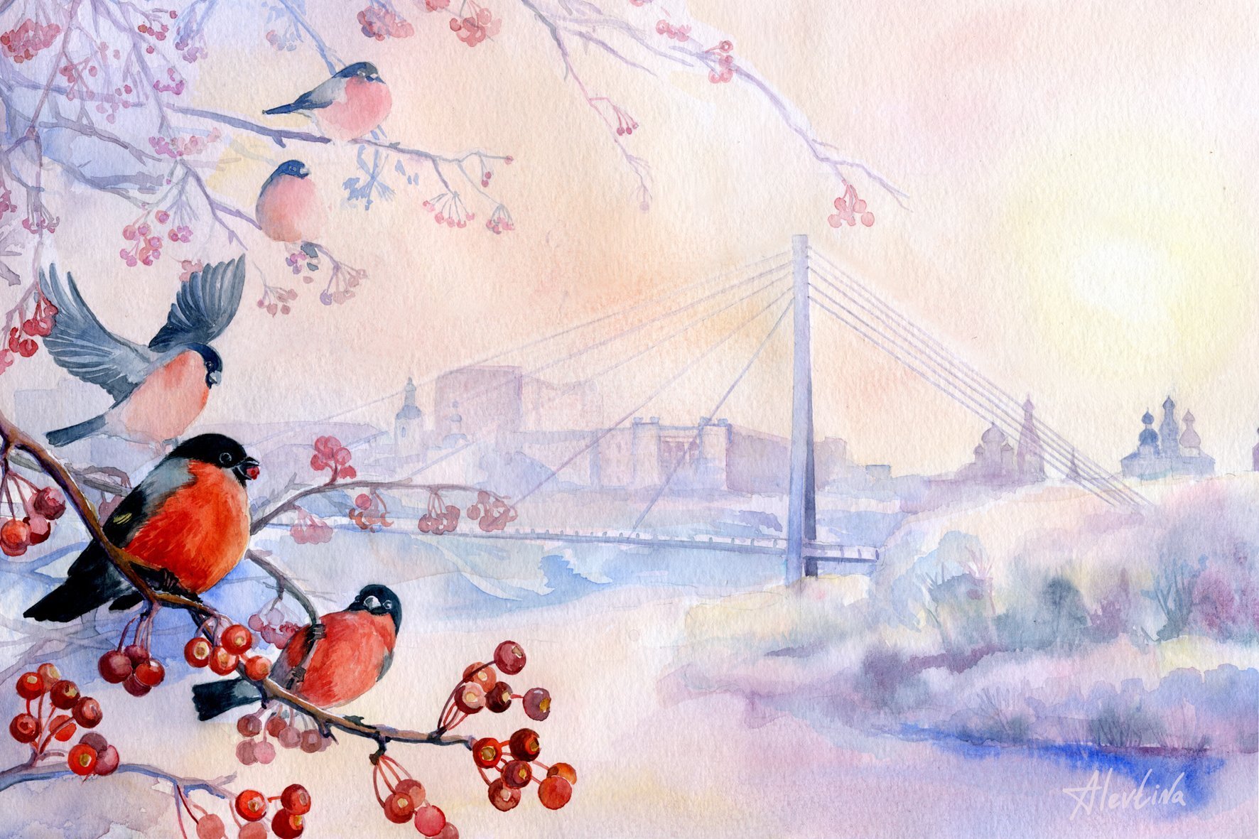 ![Художник акварелист Татьяна Анисимова зимний пейзаж]()