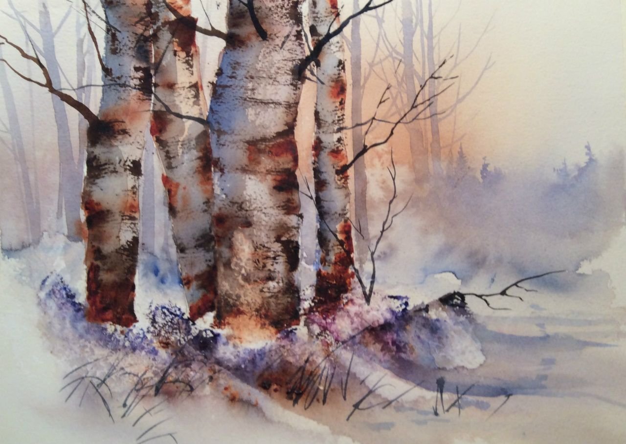 ![Зимний лес акварель]()