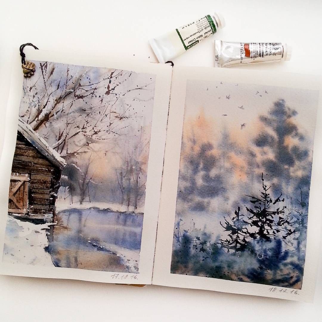 ![Зимние рисунки акварелью]()