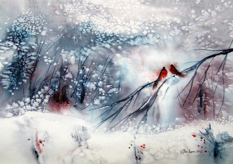 Зимние рисунки акварелью