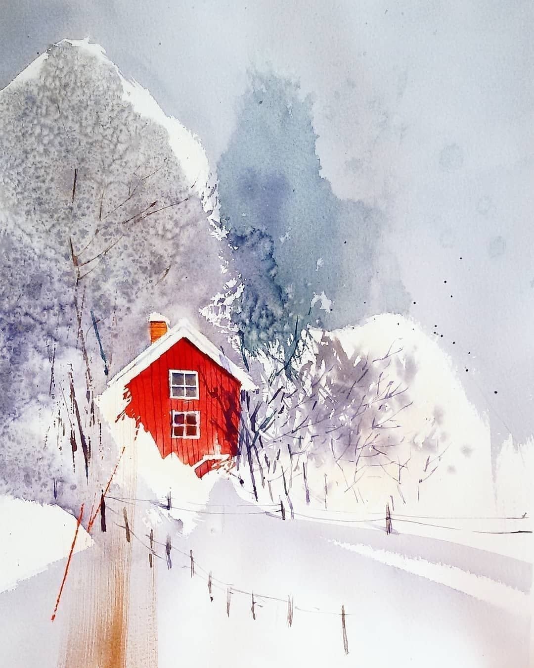 ![Зима акварель]()