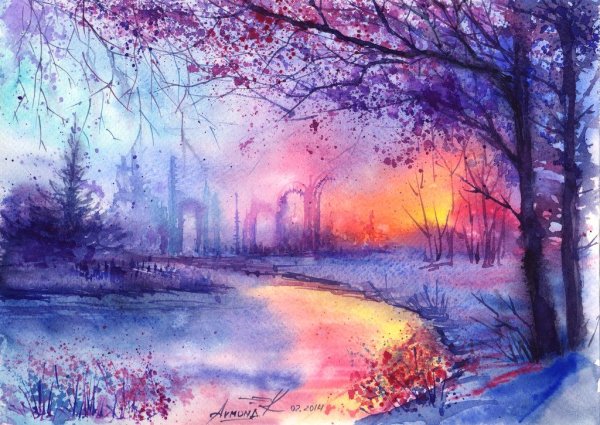 Пейзаж акварелью