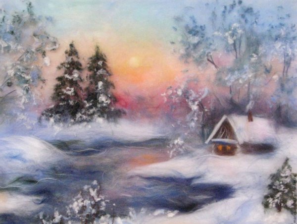 ![Картины из шерсти Марины Аскеровой пейзажи]()