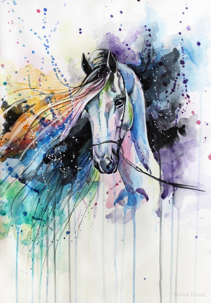 ![Лошадь в акварельном стиле]()