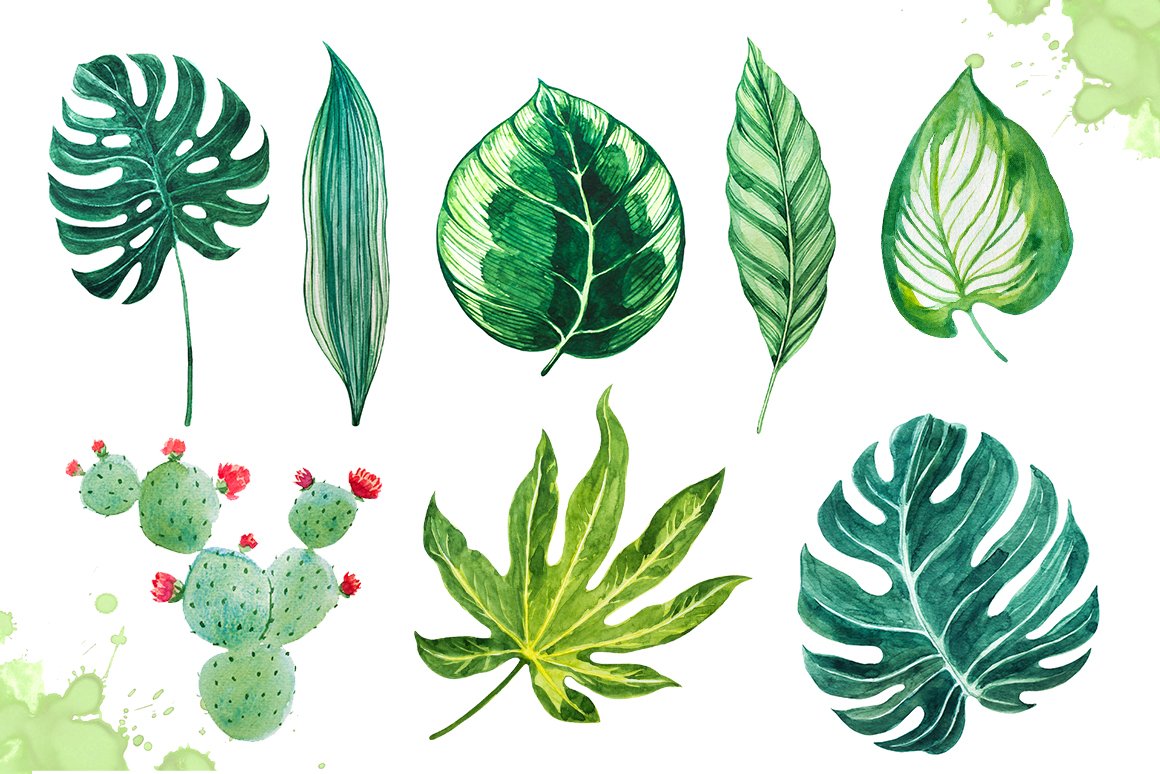 ![Лист монстеры акварель]()