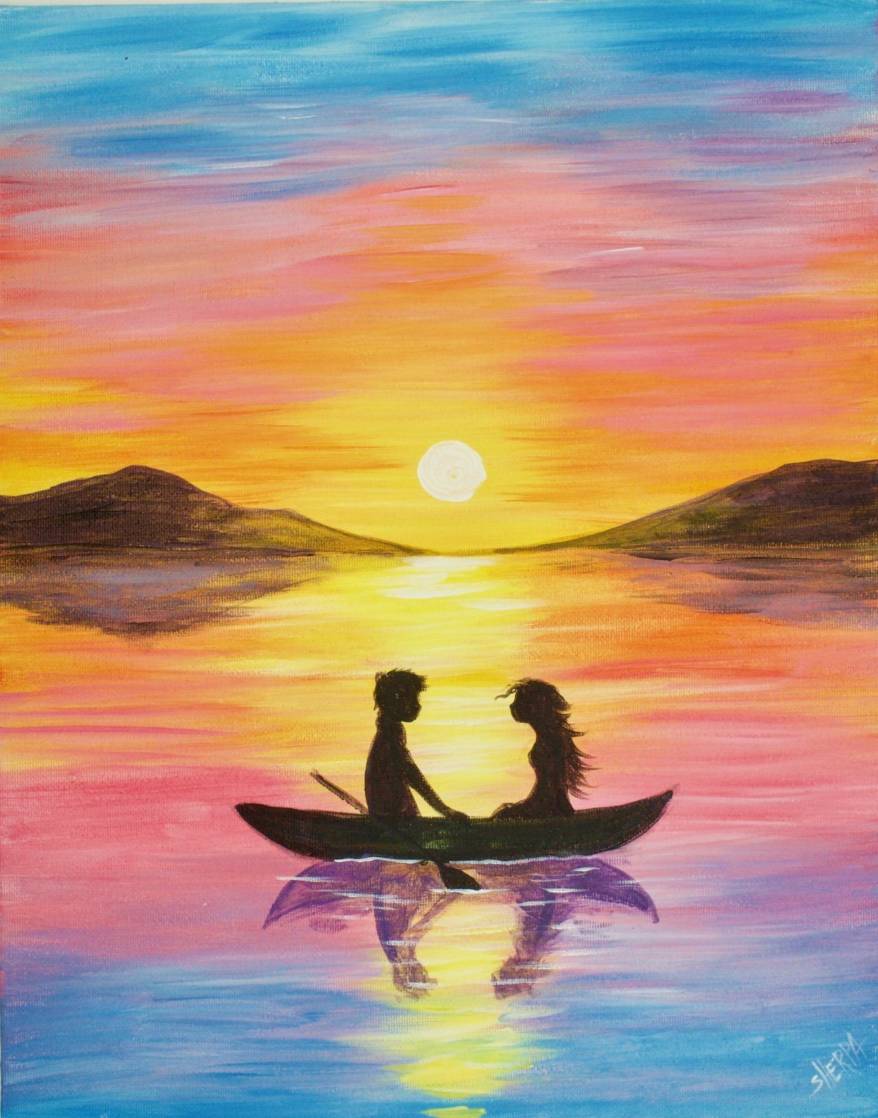 ![Влюбленные на закате живопись]()
