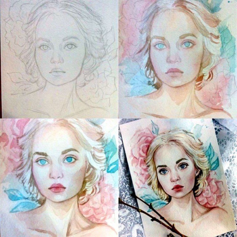 Портрет акварелью поэтапно