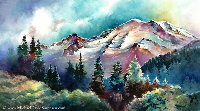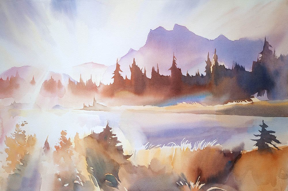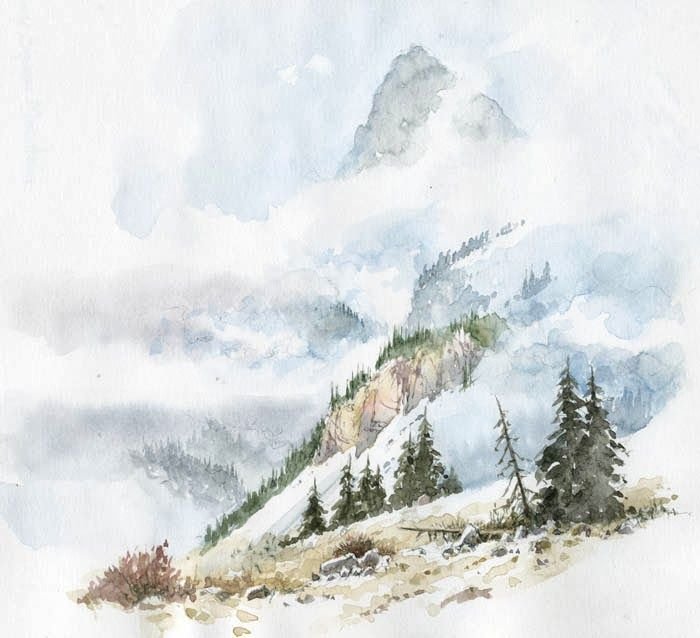 Горы акварелью лессировка