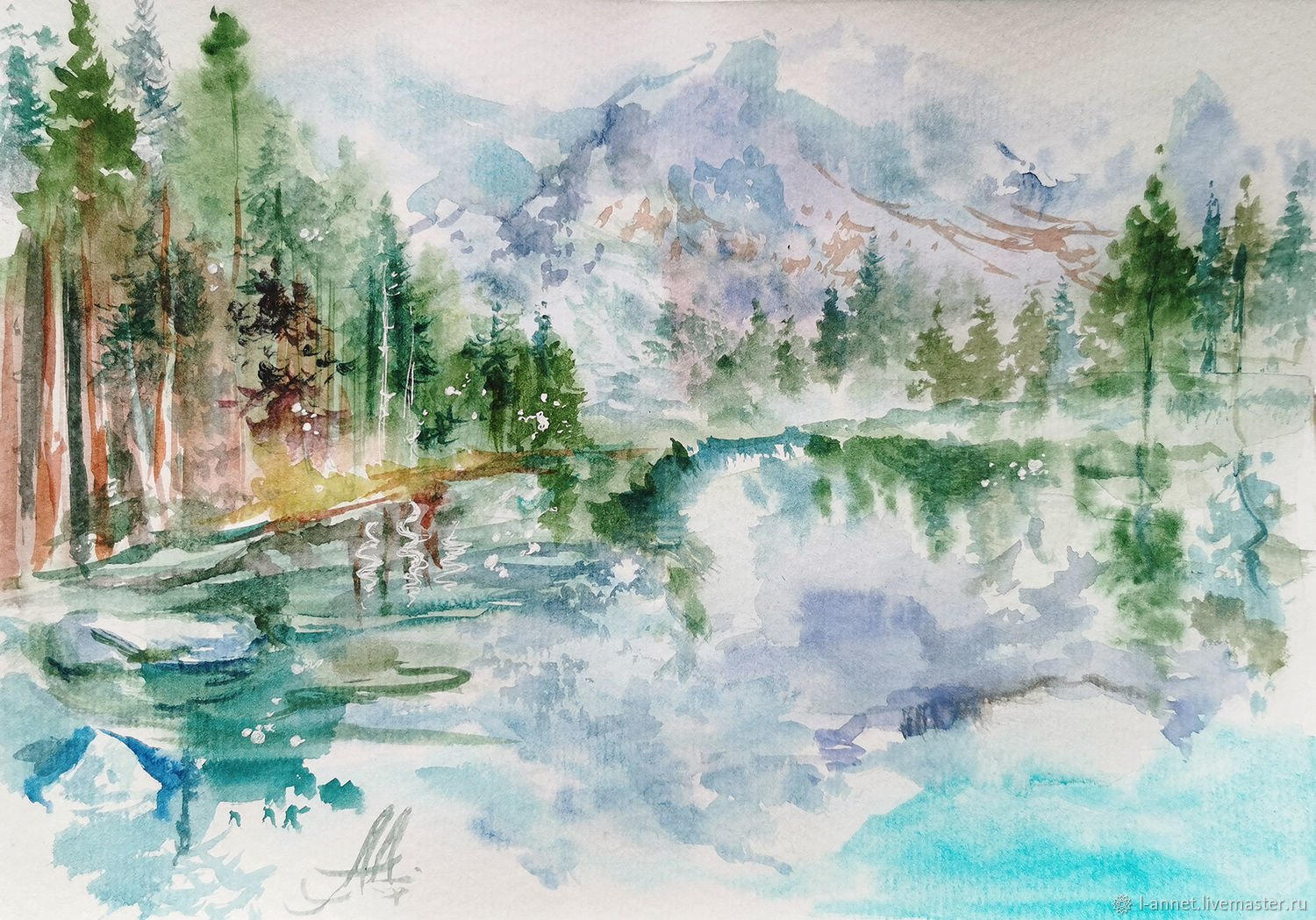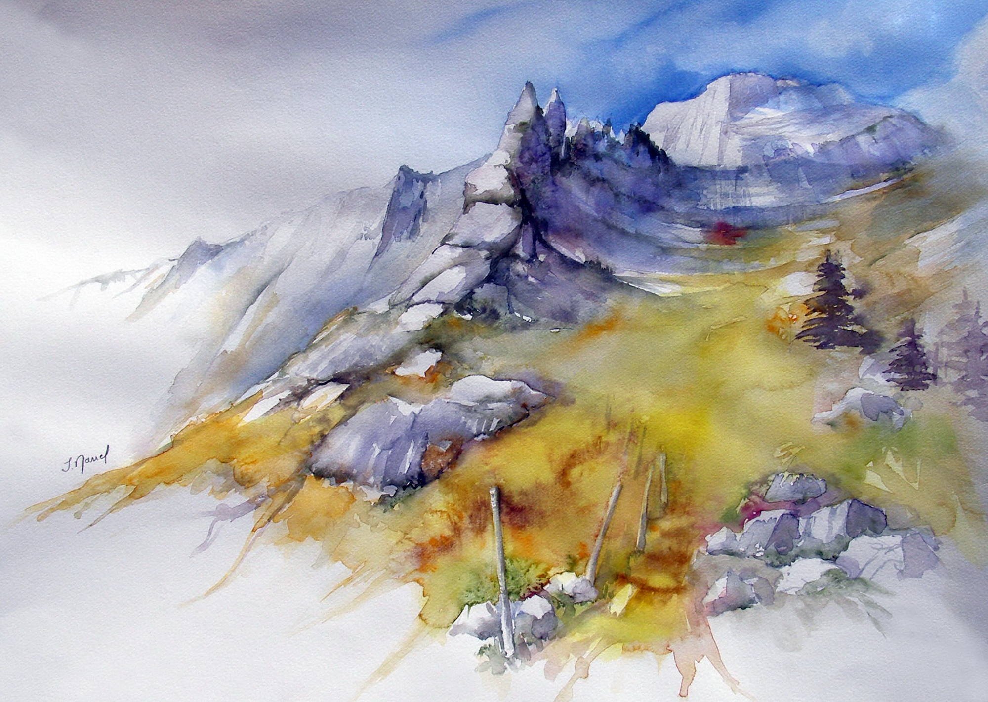 ![Горный пейзаж акварелью]()