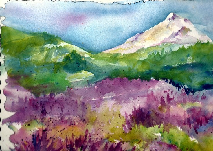 ![Горы акварелью лессировка]()
