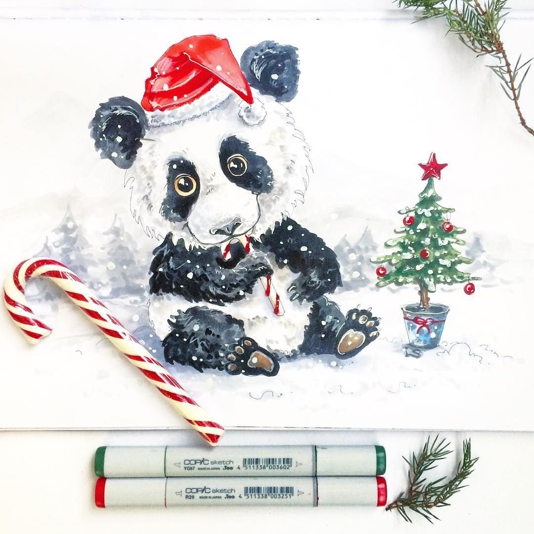![Рождественские скетчи маркерами]()