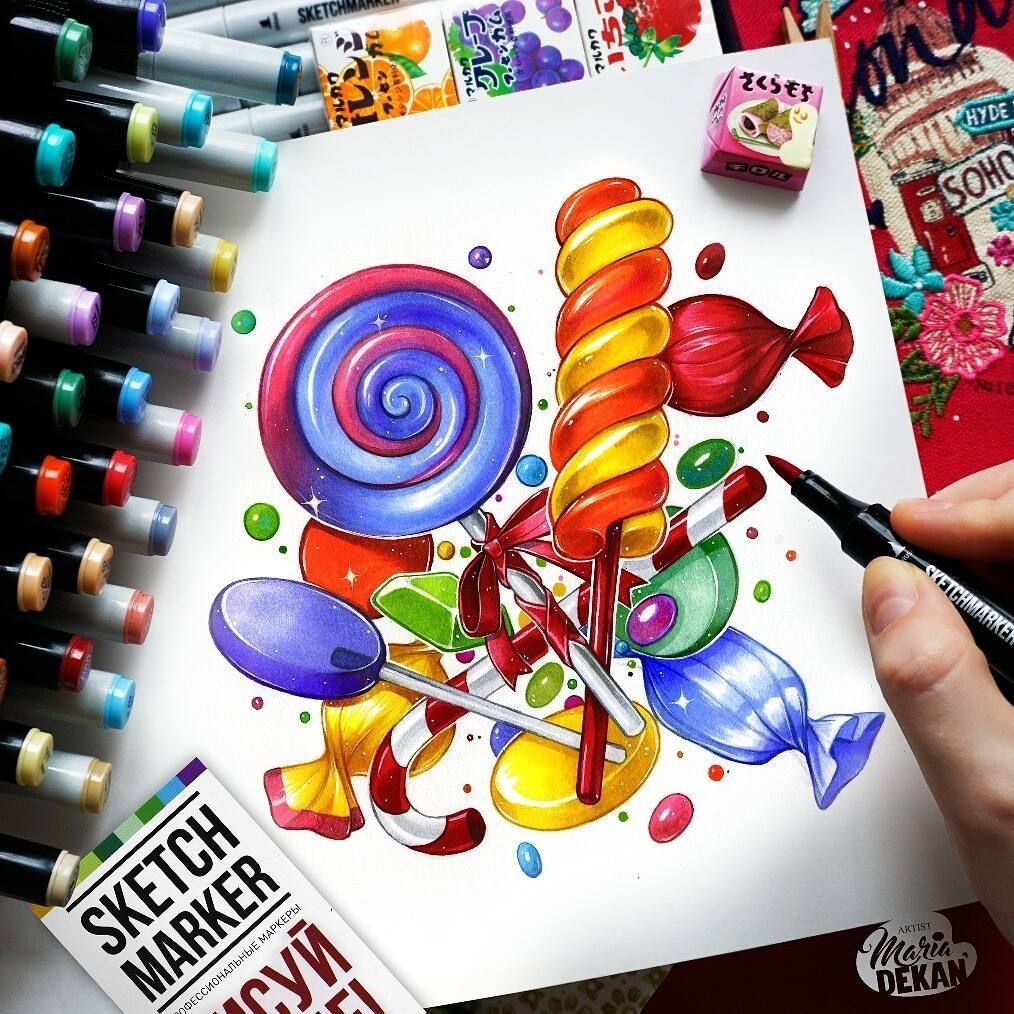 Красивые рисунки сладостей маркерами - это удивительное и творческое занятие, которое позволяет воплотить свои фантазии на бумаге. С помощью ярких и насыщенных цветов маркеров можно создавать невероятно реалистичные изображения различных сладостей, таких как шоколадные торты, пирожные, мороженое и многое другое. Каждая деталь, начиная от текстуры и оттенков, до мельчайших декоративных элементов, может быть точно передана с использованием разных тонов и эффектов рисования. Благодаря этому технике ваше искусство оживает на бумаге, а сладости превращаются в настоящие произведения искусства. Попробуйте создать свою коллекцию карточек или постеров с изображением сладких угощений, которые будут радовать глаза и приносить положительные эмоции.
