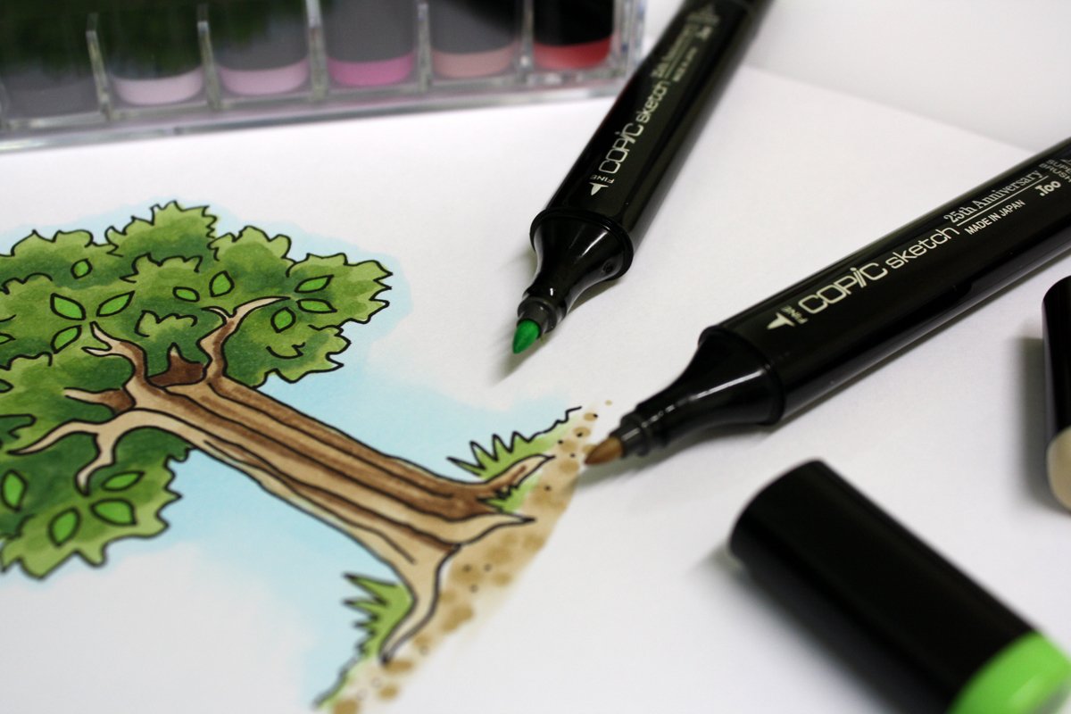 ![Пейзаж спиртовыми маркерами]()