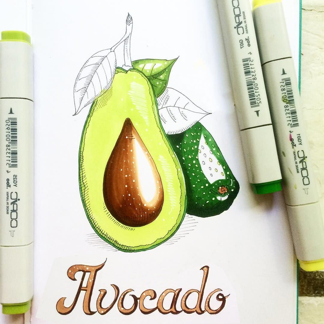 ![Рисунки маркерами для скетчинга для начинающих авокадо]()