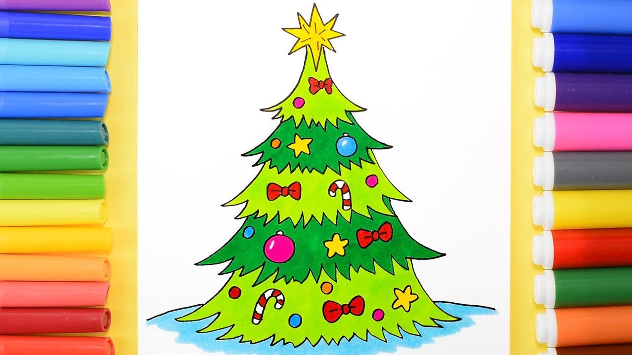 Рисование Новогодняя елка фломастерами