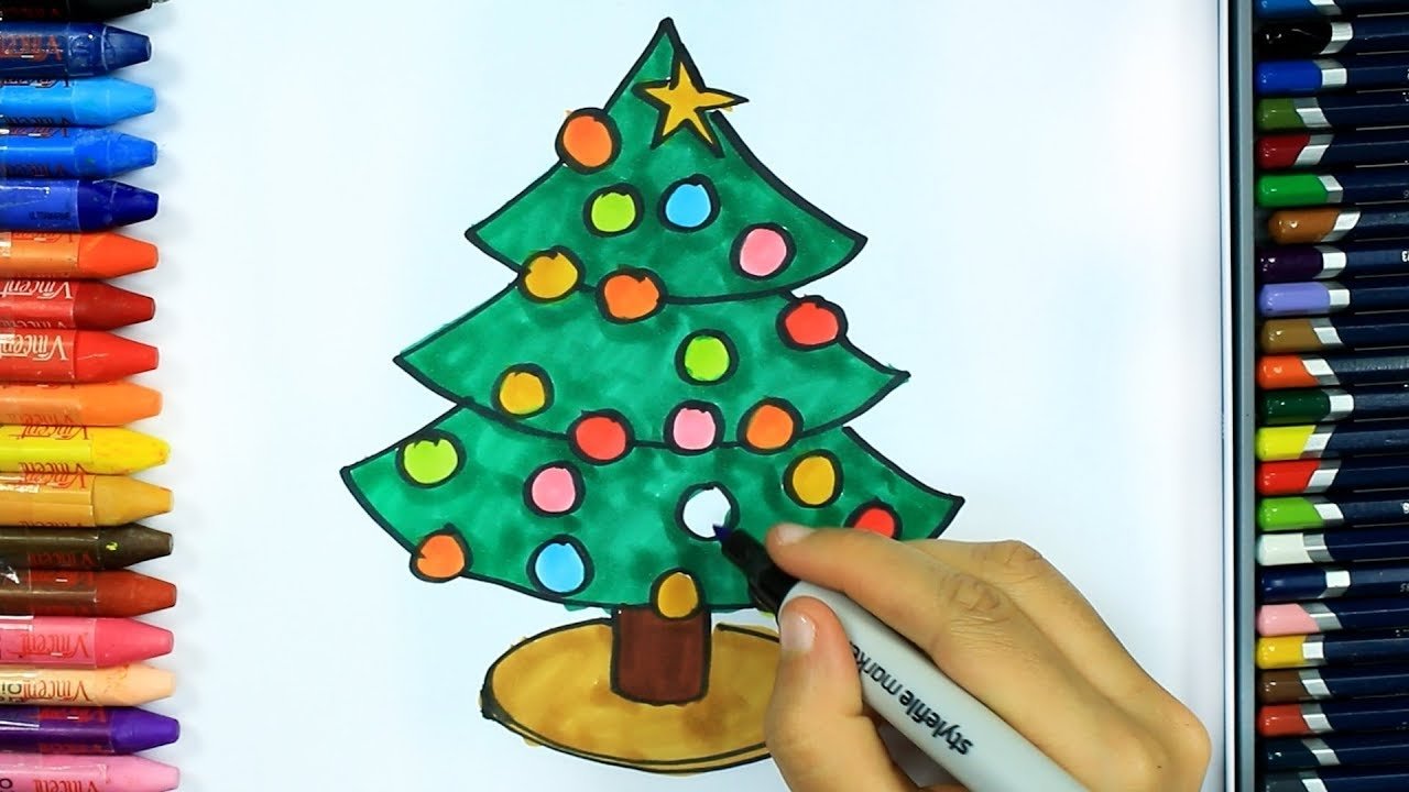 ![Рисование Новогодняя елка фломастерами]()