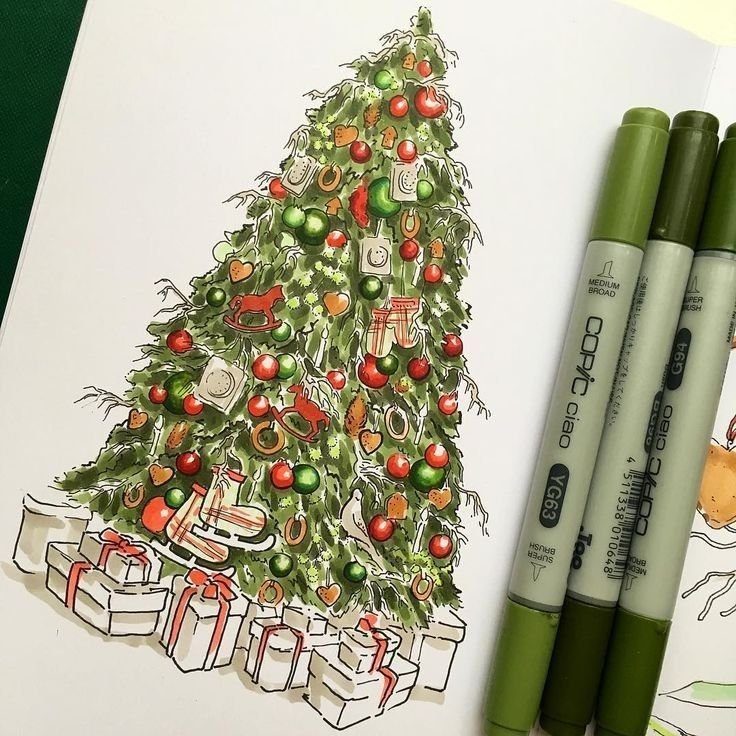 ![Новогодние скетчи маркерами]()